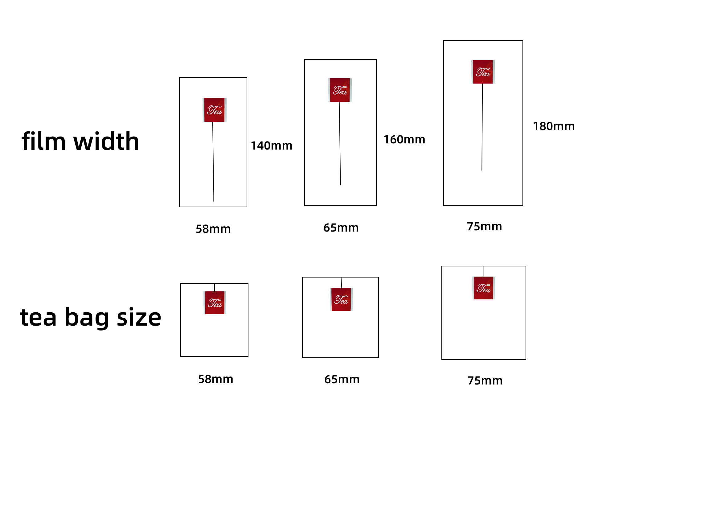 หากคุณกังวลเกี่ยวกับความสามารถในการปรับตัวของเครื่องเราจะให้บริการตัวอย่างฟรีและผู้ซื้อจะจ่ายค่าขนส่ง ขนาดทั่วไปของถุงชาเปล่าคือ 5.8 * 7cm /6.5 * 8cm /7 * 9cm และขนาดทั่วไปของวัสดุขดคือ 140 /160 /180 มม. สำหรับขนาดอื่น ๆ โปรดปรึกษาพนักงานขายของเรา